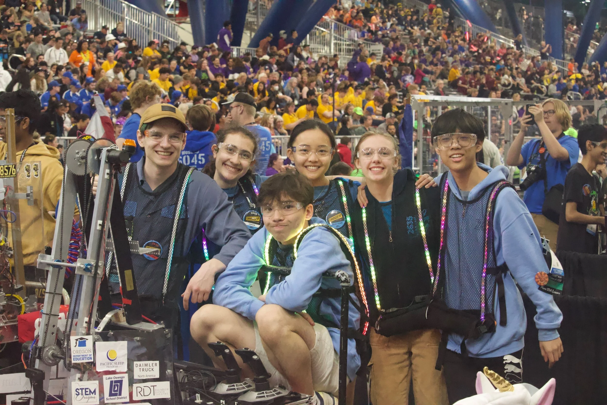 Students from Lakeridge and Lake Oswego High School build robots for our team that compete in the international FIRST Robotics Competition (FRC). Learn more about FRC here.